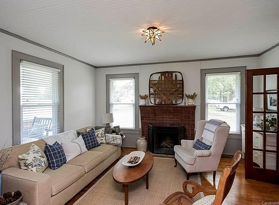 Charming farmhouse bungalow! Move in ready! Relax on front porch in a rocking chair or swing. Owners have meticulously been renovating, taking care to keep as much of the original finishes as possible. Some original HW flooring along w/some updated. Updated kitchen w/SS appliances including refrigerator. Updated bath. 3 bedrms. Living Rm, Dining Rm.Fruit trees, grapevines, chicken coop, outbuilding. 2.66 Acres of land. Iron Station Elem & East Lincoln schools. Close to shopping at 16 & 73.