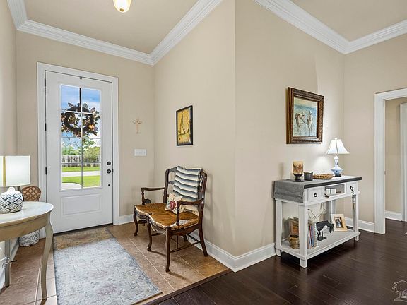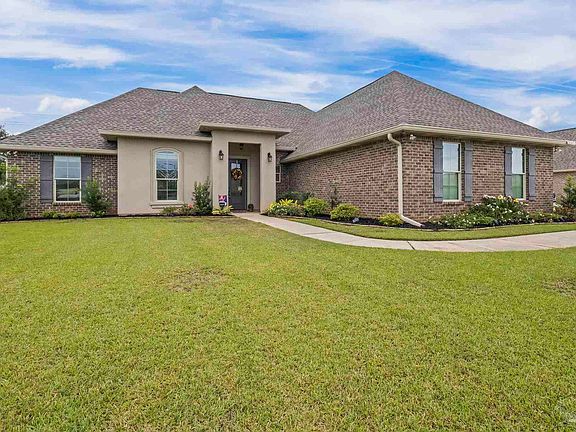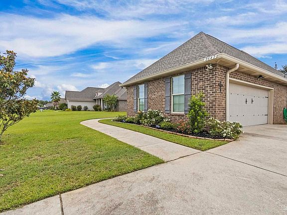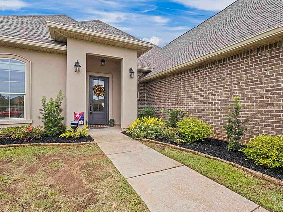 WELCOME HOME! Stunning DSLD built craftsman style design in the heart of Foley's Pebble Creek subdivision featuring a NEW FORTIFIED ROOF. Stroll in through the inviting front door to an open concept layout with soaring 12’ ceilings adorned with elegant crown molding. An abundance of natural light beams in throughout the cozy living space that centers around an electric fireplace with a charming mantle. Chef’s style kitchen with plentiful cabinet & countertop space, a walk-in pantry with solid shelving, island with breakfast bar seating, granite countertops & stainless steel appliances. Luxurious primary suite with tray ceilings flows to a spacious en-suite bathroom complete with soaking tub, separate shower, double vanity, and a large linen closet for additional storage. Split bedroom floor plan with three additional bedrooms on the North side of the home, accompanied by a guest bath with double vanities & separation of space between the tub/shower combo & toilet for privacy while guests are getting ready. French doors lead out to the fully fenced backyard equipped with widespread covered patio as well as a large storage building with a new roof. Gutter systems around the entirety of the home plus freshly mulched flower beds. NEED MORE STORAGE? The oversized side entry double garage features pull-down stairs leading to the floored attic space. EXPECTING COMPANY? Double width driveway can accommodate parking for 8 cars! This home combines style and functionality in a perfect setting! Prime location near premiere Foley shopping, dining, and entertainment, yet tucked away from the well traveled roads. Make sure to view the video tour & drone video! Buyer to verify all information during due diligence.
