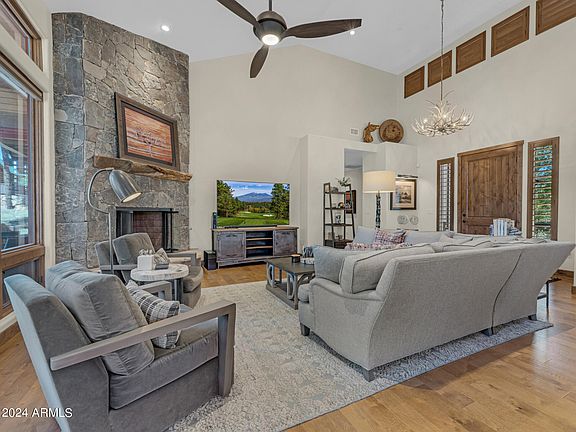 Located on a private cul-de-sac this 2,227 square foot retreat offers 3 bedroom, 3.5 baths and is perfect for entertaining guests. The popular Flagstaff floor plan is single-level, and includes wood flooring throughout, anchored by the Great Room's floor-to-ceiling stone, gas fireplace. The open kitchen, features and island with additional ice maker, granite countertops and stainless-steel appliances and flows seamlessly into the dining area and great room. The extended covered and open deck with a built in BBQ is just off the main living area. The master suite includes a walk-in closet and private exit to the deck. The master bath has a separate shower and dual vanity with sunken sinks with granite countertops. The home also includes a mini-master suite, fenced in front courtyard, three car garage with epoxy flooring and cabinets, dog run, and wood plantation shutters throughout. This home is being sold Turn Key including a Golf Cart!