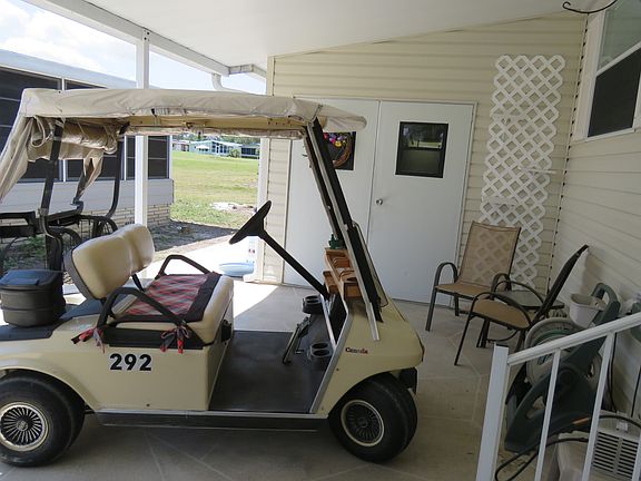 2BR 2BA 1176 sg ft. Fully Furnished, Turnkey, Plus large, windowed Florida room, laminate floors, new interior paint, beautifully decorated, spacious rooms, plenty of storage, eat in kitchen, large shed, golf course views, newer appliances, includes golf cart, new roof in 2020.