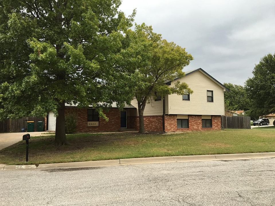 Spacious 6 bedroom, 2 bath home in southeast Wichita for rent. 3 bedrooms up and 3 on lower level. Split level design with tons of room and fenced yard. 2 car attached garage with finished basement. New flooring and paint. You must make at least 3 times verifiable income to rent, have no evictions nor felonies. Pet deposit is $200/pet