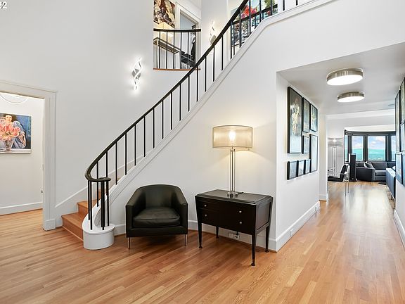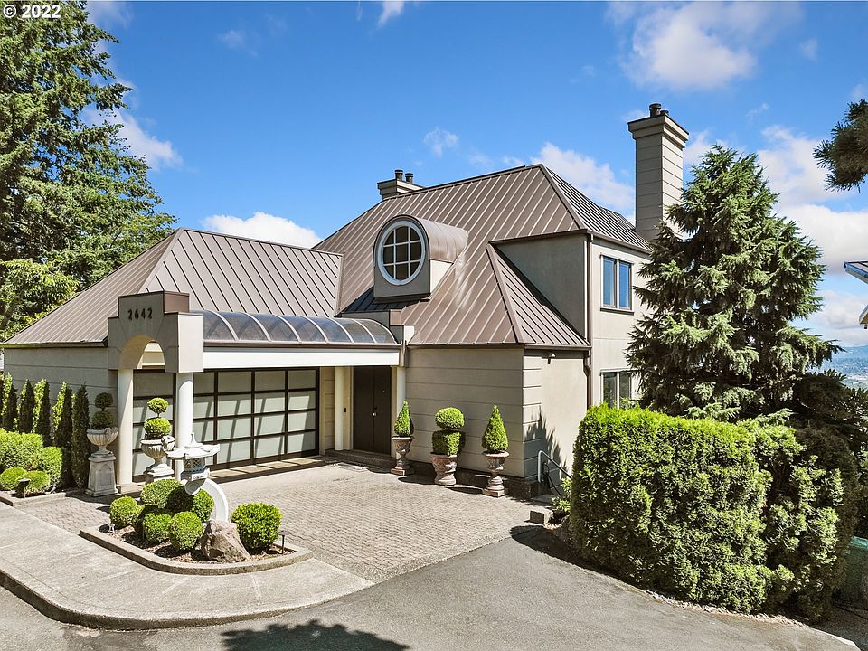 Portland Heights distinctive European architecture meets modern design in Premier view home. Take in 180-degree views of river, mtns, & city from virtually every room. Extensive list of upgrades from 2018 remodel include opening up the floor plan to accommodate living/dining/den & wet bar rooms accessing "over the top" chef's kitchen w/high-end appliances including rare 10 burner wolf range! Fresh new primary suite featuring 2 fireplaces, luxury stone finishes.