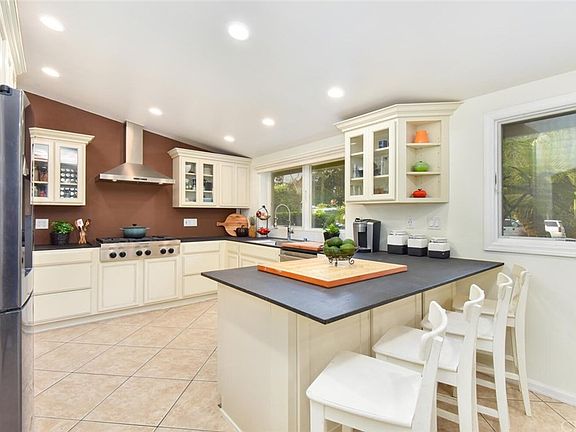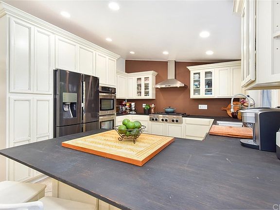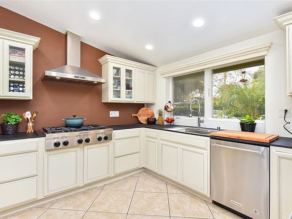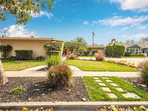Light and Bright expanded El Dorado model with open floor concept. Great curb appeal with long curved driveway. Entry way splits into the kitchen and dinning area with vaulted smooth ceilings and recessed lights. Recently upgraded kitchen features Kitchenaid appliances with 6 burner gas stove and custom cabinetry. Large living room has high vaulted ceilings and wood burning fireplace. Off the dinning area sits the expanded den area that leads out to the backyard. Backyard has large patio cover, outdoor kitchen area, and landscaped grass area. Other features include central heat/ac, inside laundry, recessed lighting, and vaulted ceilings in bedrooms. Close to Francis Hopkinson Elementary School in the Award Winning Los Alamitos School District.