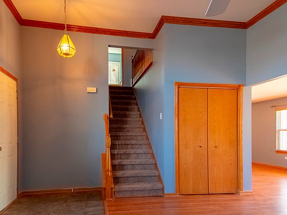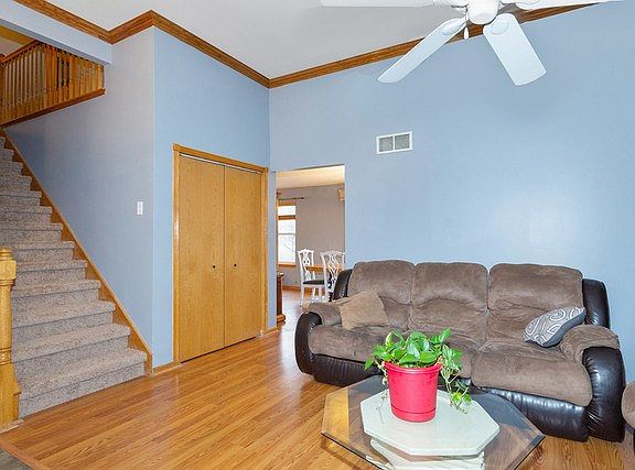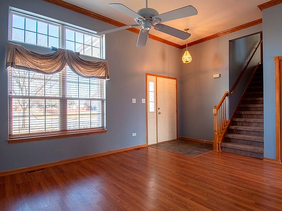 Great opportunity in Hunter's Crossing of Channahon! Enter the living room of this traditional 2 story home and enjoy soaring ceilings with lovely crown molding. Wood laminate flooring through out the first floor. Large eat in kitchen with big pantry opens to the family room. Laundry is conveniently located on the first floor, W/D stay. Sliding glass door off kitchen opens to concrete patio and large fenced yard with shed and plenty of trees for privacy. Great for outdoor entertaining in warmer weather. Take advantage of the finished basement for entertaining in the colder months or just extra play space. Heading up to the 2nd floor you will find all 4 bedrooms have new carpet. Each room also has a ceiling fan. Rooms also freshly painted. Master has private bath and vaulted ceilings. Roof replaced in 2015, radon mitigation system 2018. Gas line run for future fireplace in family room. No SSA, Minooka schools, Channahon Park district. Great location near neighborhood park, gazebo, fishing ponds, playground and bike/walking trails. School bus stop is right out the front door, making it so convenient on cold or rainy days. Easy access to I-55 and I-80.
