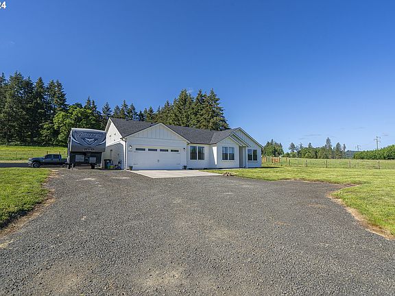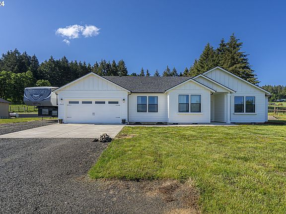 This stunning home offers the perfect blend of modern design and spacious country comfort. Situated on a generous 1.59-acre lot just 10 minutes to JC and 20 minutes Eugene. This single-story oasis boasts a vaulted ceilings, large primary suite, oversize garage, gated entry, and circle driveway for easy access for trailers. Step inside and be greeted by the luxurious ambiance of this 2022 construction. The open-concept layout seamlessly connects the living/dining to the a chef's kitchen featuring quartz countertops, pantry, gas range, custom herringbone tile backsplash, and eat-in-bar, creating an ideal space for entertaining and friends. Featuring 3 bedrooms PLUS office and two bathrooms, this home provides plenty of room for everyone to enjoy their own privacy. The custom tile work throughout adds a touch of elegance and sophistication to every corner. With a generous 2097 ft.² of living space, this single-story home offers vaulted ceilings in the living room and primary suite that create an airy and spacious atmosphere. The large primary bedroom and bathroom provide a tranquil retreat, complete with a custom tile shower, large walk-in closet, and walk-in shower for ultimate relaxation. But the features don't stop there. This exceptional property also includes RV parking with power, circle driveway, solar ready, and ample well GPM. To ensure year-round comfort, this home is equipped with a high efficacy heat pump with AC. No matter the season, you'll be able to enjoy the perfect temperature inside with the gas fireplace featuring herringbone tile surround. This beautiful modern home on 1.59 acres offers a wealth of amenities and thoughtful design elements that make it truly exceptional. Don't miss the opportunity to make this dream home yours and experience the epitome of comfortable living.Open House Saturday 6/29 11-2pm
