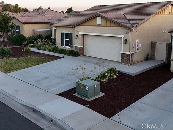 Welcome to highly sought-after Hidden Hills community of Menifee! This beautifully maintained single-story home sits at the end of a quiet cul-de-sac, offering privacy, peace, and the perfect blend of comfort and convenience. Comes with Washer/Dryer, Fridge, and for energy saving 9 solar panels. Home feature 4 spacious bedrooms and 2 full bathrooms, this home boasts an open-concept floor plan designed for modern living. The bright and airy living room seamlessly flows into the dining area and gourmet kitchen, making it perfect for family gatherings and entertaining. The Kitchen has center island, and ample counter space a true centerpiece for your home. Retreat to the primary suite, complete with a walk-in closet and an ensuite bathroom featuring dual sinks, a soaking tub. The additional bedrooms are generously sized and ideal for family, guests, or a home office setup. Step outside to your large backyard with a covered patio for relaxation. Whether you're hosting a BBQ or enjoying a quiet evening, this backyard is ready for you. Located within walking distance to Hidden Hills Community Park, this home provides easy access to scenic walking trails, and playgrounds. Conveniently close to both the I-15 and I-215 freeways, commuting to nearby cities is a breeze. You'll also find yourself just minutes away from schools, Menifee Town Center, shopping, and dining. Built recently, this home offers the best of energy efficiency, modern design, and move-in-ready. This home is ready for you today! Don't miss this opportunity. Schedule your private tour today and fall in love with 26423 Rediron Ct where comfort meets convenience!