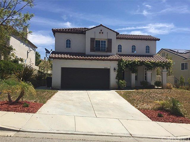 Beautifully upgraded Stevenson Ranch home featuring over 3,100 square feet of living space with five bedrooms and three baths (one bedroom and one bath downstairs). Excellent floor plan with beautiful brand new wood flooring throughout entry, living room, dining room, kitchen and hall area. The bathrooms have been upgraded with new fixtures, and travertine or stone tile! Upgraded baseboards and light fixtures. Family room with fireplace and built in glass shelves in niches. Gourmet kitchen with center island and granite counters. Peaceful courtyard setting with pavers off downstairs hall. Upstairs has small loft area for study area, bedrooms have grey wood floors. Master suite has its own fireplace, and updated master bath with porcelain bowl sinks. Step saving upstairs laundry room, super convenient! The POOL sized rear yard is a blank canvas, ready for the new owner to create the backyard of their dreams. View overlooking Poe Parkway, neighbourhood, and hill ranges beyond. Due to multiple offers, seller is requesting highest and best offers by 1pm 6/15/2016 local time. PROPERTY IS SOLD IN AS-IS CONDITION.