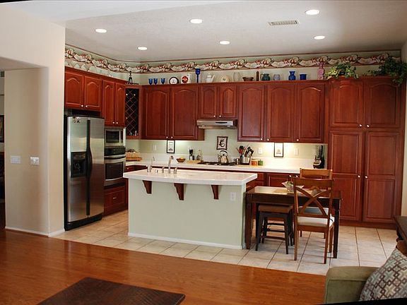 3+2 Single story home in Stevenson Ranch. With Surrounding homes that average a listing price of $879,000 this 3 + 2 stands strong Featuring 10 foot ceilings throughout and hardwood flooring, A Master chef's kitchen with rich cherry wood cabinets and Kenmore Elite stainless steel appliances. The family room features a fireplace with custom built-in speakers and entertainment center. The Master Bedroom Suite, with his/hers walk-in closet, dual bathroom sinks, Cherry wood cabinets and custom built storage for linens. The easy accessible attic space has custom installed flooring for all seasonal decorations. The 2 car oversize garage features custom Oak shelves for extra storage; the private backyard oasis features a grassy play area, covered patio, outdoor ceiling fans, built-in BBQ by Barbeques Galore, a fire pit and more. No Mello-Roos. HOA $25.00/Month