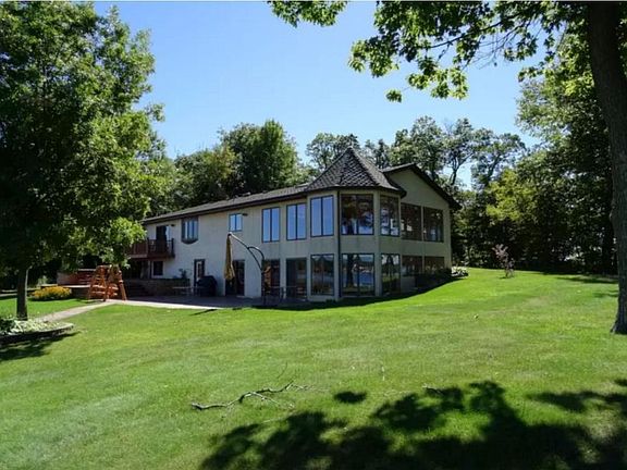 Private 3 acre Peninsula, over 1,000 ft of lakeshore, 100+ft of flat sandy beach. This cozy home boasts two separate living areas with completely separate kitchens. 2 bedrooms down, upstairs a bedroom and an office/bedroom with a spa bath, sauna and separate shower. The spectacular great room provides lake views from every chair with a massive fireplace. The 3 stall garage is extra deep to store your toys! 35 minutes from downtown Mpls. Green Lake is a 2,000 acre full recreational lake. Enjoy!