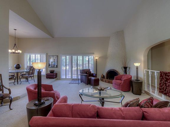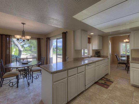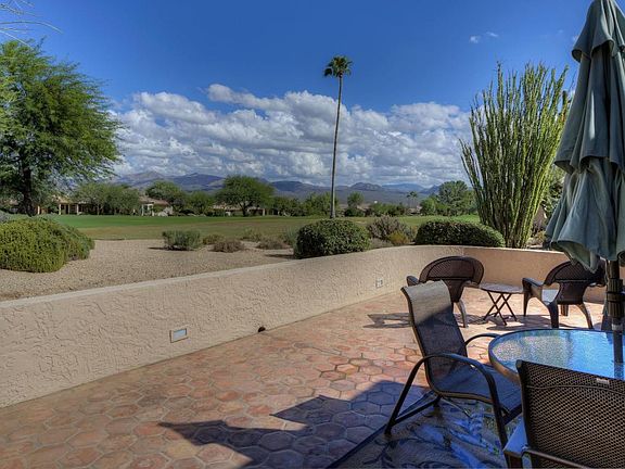 WOW! DOUBLE LOT ON THE GOLF COURSE WITH GREAT MOUNTAIN VIEWS. VERY PRIVATE, LOCATED AT THE END OF THE STREET. GREAT ROOM WITH VAULTED BEAMED CEILING, KIVA FIREPLACE, NEWER BERBER CARPET, & SLIDER TO THE PATIO. KITCHEN HAS NEWER SS REFIG & SMOOTH COOKTOP, RANGE OVEN AND MICRO. WALK IN PANTRY, BREAKFAST ROOM W/SLIDER TO PATIO. LARGE NEUTRAL TILES IN ALL THE RIGHT PLACES AND PLANTATION SHUTTERS THROUGHOUT. DEN/OFFICE 3RD BR HAS DOUBLE DOORS & BERBER CARPET. HALL BATH WITH TUB/SHOWER LARGE FLOOR TILE UPDATED LIGHT FIXTURE. MASTER BR HAS SLIDER TO PATIO, SKYLIGHT, WALK IN CLOSET & ROMAN STYLE TUB SHOWER. HUGE WRAPAROUND PATIO W/SALTILLO TILE ON NORTH AND EAST SIDE WITH BUILT-IN BBQ. TWO CAR + GOLF CART GARAGE CAN HOLD 2 GOLF CARTS, LARGE STORAGE ROOM, EPOXY FLOOR, SERVICE DOOR TO BACK YARD.