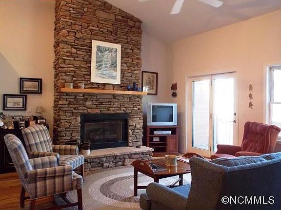 Like new 3 BR, 2 Bath townhome in Qualla Village. Stacked stone gas fireplace in the spacious, bright GR, separate DR, master suite w/large walk-in closet, rear deck, 2 car garage & a mountain living bonus: a level driveway. Lots of extra storage in the large unfinished basement. The QV POA provides scheduled maintenance of building exteriors decks & driveways & 2 docks for access to Lake Ticoa. All this & one level living. CFPOA UAF fee $8,000