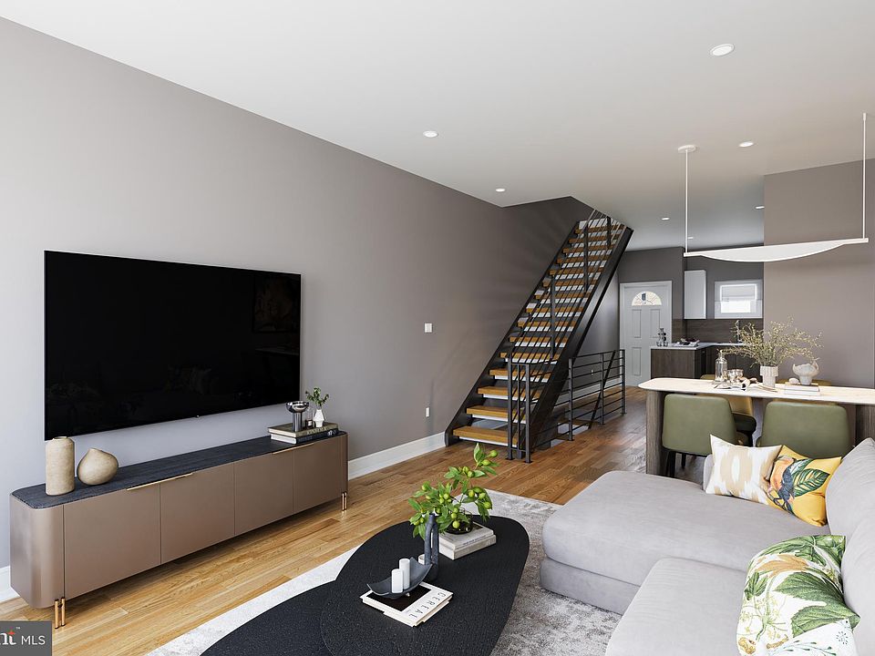EXTRAORDINARY OPPORTUNITY TO PURCHASE WITH AN ASSUMABLE LOAN AT JUST 2.25%! COMBINED WITH REMAINING TAX ABATEMENT, THERE IS NO BETTER DEAL AROUND. Discover the perfect blend of modern elegance and comfort in this stunning contemporary townhouse located in the desirable Point Breeze neighborhood. Built in 2019, this meticulously maintained home boasts fenced-in private 1-car parking, contemporary styling with matte black hardware, multi-tone finishes, floating staircase, and chic design. The open floor plan invites natural light to dance across the beautiful natural oak floors, creating a warm and welcoming atmosphere. Step into the heart of the home, where the spacious dining area seamlessly flows into a stylish kitchen equipped with stainless steel appliances, including a six-burner gas stove, built-in microwave, dishwasher, and a stainless steel under-mount sink with an articulating faucet. Whether you're hosting a dinner party or enjoying a quiet meal, this kitchen is designed for both functionality and style. The second level of the home offers two spacious guest rooms, nicely appointed guest bath, and laundry. The upper level reveals the primary suite floor, where one may retreat to the primary bath featuring a sleek and luxuriously spacious matte black walk-in shower, perfect for unwinding after a long day. Enjoy morning coffee from the private deck off the primary suite, and evening gatherings under the stars from the full roof deck offering unobstructed skyline views. The fully finished basement offers additional space for entertainment, gym, office, or guest space, complete with a powder room. Safety and convenience are paramount, with an electric alarm system, exterior cameras, and a private, fenced driveway. This home is not just a place to live; it's a lifestyle waiting to be embraced.