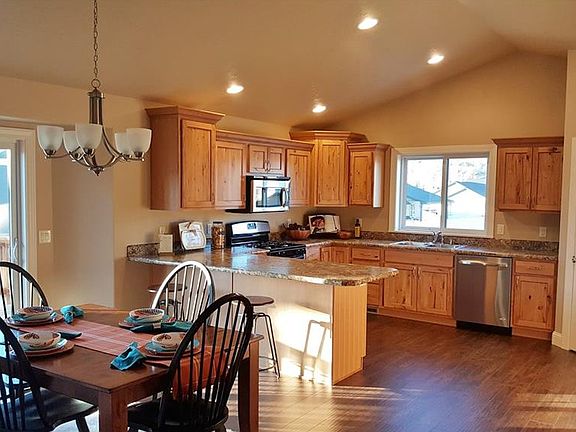Elegant craftsmanship w/ warm, inviting colors in this new construction home. Rustic Beech cabinets w/ stainless steel appliances & large eating bar. Sliding patio door leads you out to the deck overlooking the large, fenced backyard. Vaulted ceilings at soaring heights over the living room, kitchen & dining room. Coved ceilings & walk-in closet in the Master w/ private bath. Crawl space has Cement Floor w/ A/C for lots of storage. Oversize 3 car garage sheet rocked and finished.