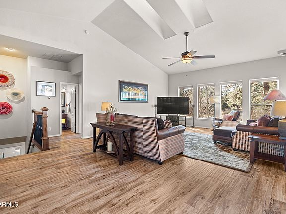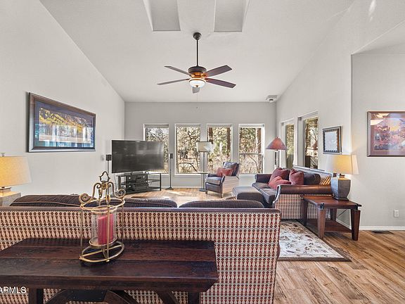Discover this beautifully remodeled home in Flagstaff, Arizona, situated on nearly half an acre and perfectly positioned along the 13th hole of the Aspen Valley Golf Course. The primary suite is conveniently located on the main level, while the walkout basement features two additional bedrooms and a spacious game room, offering two distinct living and entertaining areas. The recent renovations include a modern kitchen, an updated primary bathroom, fresh paint, and new flooring throughout, creating a fresh, inviting atmosphere. Most evenings, you'll enjoy the serene sight of a herd of elk passing through, adding to the home's natural charm. This property seamlessly blends comfort, style, and stunning golf course views—perfect for both relaxation and entertaining. house upgrades