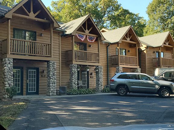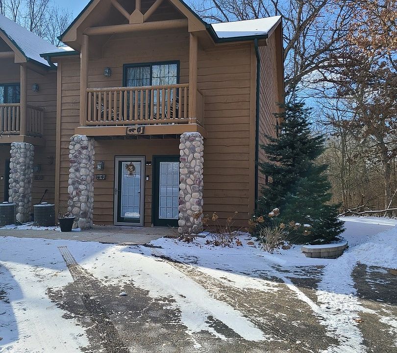 Enjoy the charming village of Utica in this 2 bedroom, 2 bathroom villa in Grand Bear resort, located in the heart of Starved Rock State park. Open kitchen, dining and living room with gas fireplace. Laundry room is on the main level. Both bedrooms on the second floor. Master bedroom suite has gas fireplace, whirlpool tub, separate shower. Unique front and rear balconies. Refrigerator, stove, microwave, dishwasher, washer, and dryer all included. This unit is very secluded and quiet. Monthly association dues include cable and internet service, water , daily trash pickup, snow removal, lawn care and exterior siding and roof maintenance. Make this beautiful and relaxing place your own! Great location for a vacation home, weekend retreat, investment Rental or year-round primary residence.