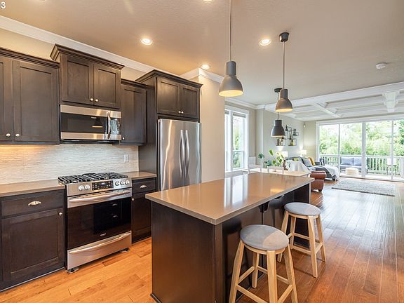 Fabulous Kenton newer construction craftsman w/ dreamy outdoor areas. Sunny main level w/ open living/dining, expansive windows & quality details - wainscoting, box beam ceilings & a cozy gas fireplace. Kitchen w/ quartz counters, breakfast bar & SS appliances. Ideal floor plan with 3 beds, 2 full baths & laundry room upstairs; ½ bath on main; lower level w/ 4th bedroom & full bath. Owner's suite has a peaceful view of the backyard w/ soaking tub, separate shower, double sinks & a spacious walk-in closet. Move in and enjoy the AC just in time for summer. Covered back deck & front porch offer a lovely rainy day outdoor sanctuary. Private fenced yard w/ 2-person cedar barrel steam sauna included! A quick jaunt to all of Kenton's amazing amenities, park & MAX line. Walk score 81, bike score 95. Welcome home. [Home Energy Score = 4. HES Report at https://rpt.greenbuildingregistry.com/hes/OR10200206]