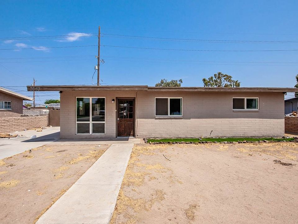 3 bedroom 1 bathroom house for sale in the center of Yuma in Westridge Estates sits on a generous lot with large front and back yards with additional cement pad for on property parking. Double gates make access to the back yard easy. Brand new carpet throughout the home with tile in the kitchen and dining. Updated bathroom with newer vanity, mirror and tile. Back covered patio with storage shed in the backyard.
