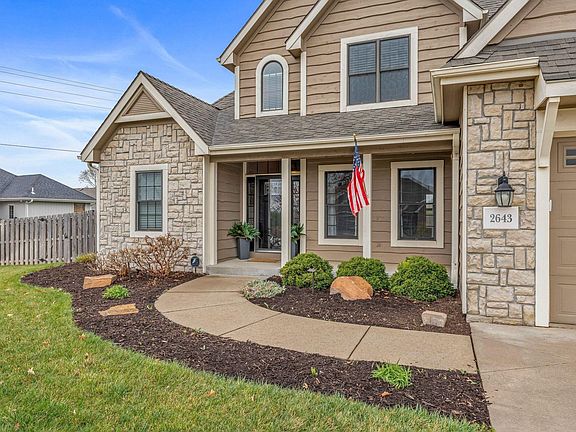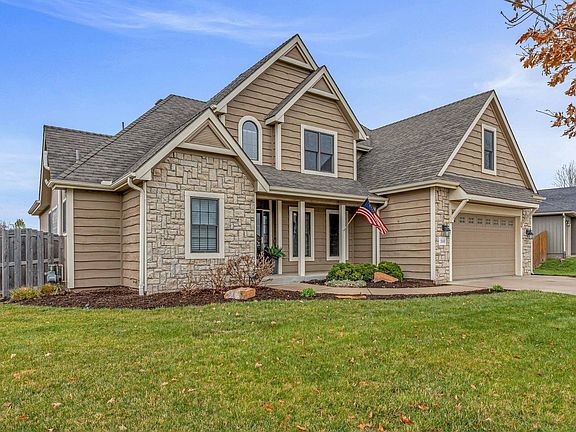 This stunning Washburn Rural 1.5 story home boasts 5 spacious bedrooms, 3.5 baths, and over 3,500 square feet of living space. Designed by Thiessen Design & Construction, the kitchen showcases exquisite Custom Woods cabinetry, complemented by fresh interior paint and oak hardwood floors on the main level. Additionally, the main level features an open floorplan with a dedicated and updated dining room, large primary suite, and renovated half bath. Tall ceilings will be appreciated throughout the home including an 18-foot-high ceiling in the living room accompanied by a gas fireplace. Need a quiet workspace? Discover the additional office space in the basement currently being used as a game room. Enjoy the spacious finished basement, ample storage space, a full bathroom, and the 5th conforming bedroom with a walk-in closet. On the upper level there are 3 bedrooms and a full bathroom. One of the upper-level bedrooms is over 20 feet long and 13 feet wide. Step onto the covered, wrap around composite back deck and enjoy the landscaped, and fully fenced backyard while listening to your favorite music via the installed Bluetooth speakers. With front and back exterior lighting, and a firepit adorned by wonderful stonework the outdoor space is sure to impress. One of the sellers is a licensed real estate agent in the state of Kansas. Schedule your showing today!