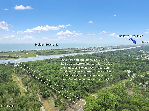 WOW ~ OPPORTUNITY LIKE THIS DOES NOT COME ALONG OFTEN! OVER 3 ACRES OF PRIME WATERFRONT REAL ESTATE ~ Looking for Acreage on the water? Look no further, this beautiful piece of waterfront property boasts 100' of Intracoastal Waterway frontage & ready for it's new owners. Sprawling parcel offers the beauty of living at the coast along with the privacy to feel like you have it all to yourself! Even better? You can be to award winning Holden Beach in just over 5 minutes. With 3.22 Acres you will be able to build your dream home, garage and poolhouse, while enjoying the privacy this property offers. Zoned SBR-6000 for site-built homes only. Shopping, restaurants, schools and medical facilities in Shallotte are also just a +-10 minute drive away. Holden Beach is located conveniently between Wilmington and Myrtle Beach. Come and take look for yourself today! Access to municipal water, 4 bedroom expired septic permit on file! Call today to schedule your area tour and come see what you have been missing!