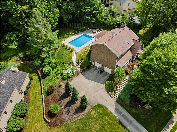 Amazing Franklin Park custom home tucked away in Huntington Woods. A mature sidewalk community in North Allegheny School District. Minutes from all major roadways, shopping, dining, schools, parks, etc. Large eat-in kitchen fully equipped SS appliances, granite counter tops, and custom backsplash. Spacious FR w/built-n bookcases and feature masonry fireplace. Formal living/library room & dining rooms. Gorgeous Executive office. Luxury master suite with walk-in closet, ceramic tile surround shower/w glass, and skylights. Large additional bedrooms and additional full bath. Finished lower level w/bonus flex fitness area. Incredibly private yard and outdoor space, Heated in-ground salt water pool with travertine tile surround and auto cover. Stunning hard roof covered patio area w/gas fireplace Additional features are a 1st floor laundry, 2 car garage w/extra storage area, fitness room, flat driveway, complete privacy, lush landscape, 1 year warranty.