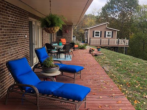 Open concept brick home filled with light from windows and glass doors in every room. Granite countertops new in 2018, hardwood floors throughout. Wood-burning fireplace in addition to central cooling and heating. Ample storage with walk in closets and attic space, a laundry mud room, and an office. On the north side of the house, there is an under roof patio that stays cool during the heat of the day. On the southside there is a 50 foot long porch under partial roof to watch the sunsets over the Smoky Mountains. Acreage would work well for a mini farm. In addition to the house and attached garage, there is a garden shed, a separate workshop and storage for tools, and covered parking that would be ideal for farm equipment or recreational vehicles. There is a detached art studio with vaulted ceilings, ample natural light and a porch. A small separate building currently serves as a man cave.