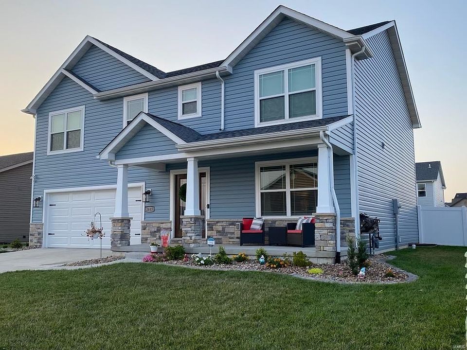 Located in the MASCOUTAH SD, this 4 bed/4 bath home checks all the boxes! Over 3000 sq ft of living space! Finished Basement! 3 Living Areas! Fenced Yard! Golf Cart Community! Open concept main level has dream kitchen w/center island, granite countertops, staggered birch cabinetry, & pantry - separate formal dining w/exposed beams. Head upstairs to landing (21x11) used as 2nd living area. Primary ensuite has vaulted ceiling, walk-in closet, dual vanities, soaker tub, & separate shower -3 additional beds, guest bath & large Laundry w/ utility sink complete upper level. Basement has been recently finished (w/permits) w/3rd living area (w/egress), game area, full bath and large storage area. (20x12) Enjoy the summer on the patio w/pergola and fenced yard. Updates: 6 ft Vinyl Privacy Fencing, Basement Finish w/ full bath, Landscaping, Backsplash, Hardware in Kitchen & Bathrooms, Blinds throughout! Close to parks & walking trails. 5 minute walk to Wingate Elem & 10 min drive to Scott AFB!