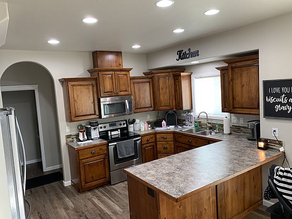 This is not your typical glacier park home! Taller ceilings throughout the home! Giving it a more open spacious feel! Plantation shutters throughout the entire home also! 4 bedrooms with 2 & 1/2 bathrooms. A HUGE beautiful fenced backyard with a gas fire pit surrounded by pavers perfect for family get togethers & BBQs! Wrap around landscape curbing. It has a sprinkler system already in place for you! Very Spacious 2 car garage can fit 3 cars depending on your vehicles. Great friendly neighbors & neighborhood!