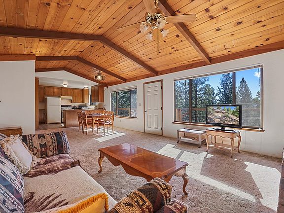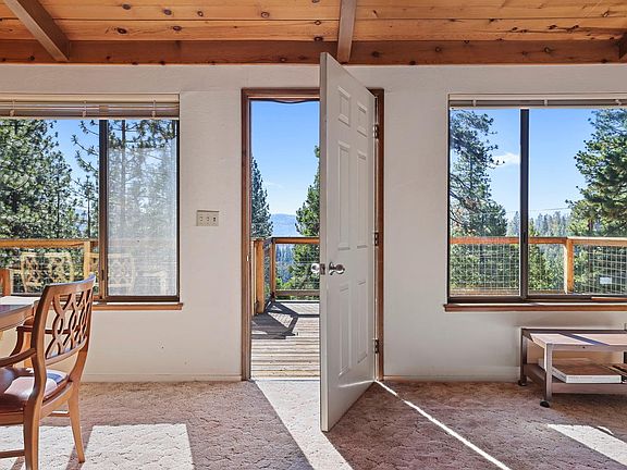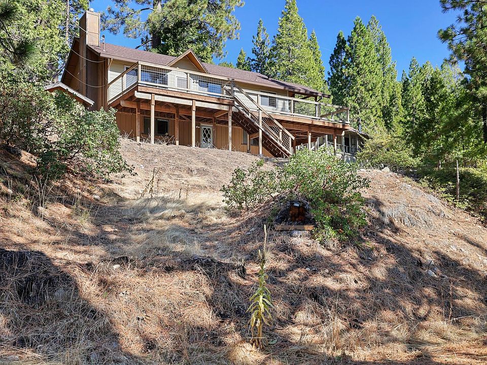Lovely house located atop a hillside surrounded by mature pine trees with elevated stunningly beautiful views of pine tree filled mountains and blue skies in the distance out of large windows in spacious upper open floor plan living room, dining room and kitchen, vaulted wood beam ceilings, large wrap around deck, 2 bedrooms on upper floor, 2 full bathrooms (one on each floor), huge expansive downstairs bonus room (can be used as a third bedroom or recreation room etc.) with its own separate entrance and deck, large laundry room off bonus room the size of an eat in kitchen with washer/dryer, sink and extra refrigerator. Convenient off-street parking in back of house next to upper floor entrance. Located in Cold Springs (near Sonora) in Tuolumne County. Just a short drive to Pinecrest Lake Resort and Dodge Ridge Ski Resort. 3 Bedrooms, 2 Full Bathrooms 1672 sq. ft Easy access to Highway 108 Convenient off-street parking in back of house next to upper floor entrance High Speed Internet, Cable TV, Landline and Cell Phone Service available at renter's expense (free antenna TV) 1 Year Lease Pets: Well-behaved housebroken pets considered. Unfurnished Renter pays all utilities. High Speed Internet, Cable TV, Landline and Cell Phone Service available at renter's expense (free antenna TV). No smoking allowed. Renter's insurance required. Must have good credit report, references, reliable income.