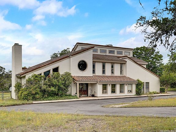 Tucked away on 5 expansive acres, secured behind a private automated gate and surrounded by majestic oak trees, escape to your own private oasis with horses allowed no HOA restrictions and Boerne I.S.D! The main living area boasts soaring ceilings, slate fireplace, and engineered hardwood floors, creating an inviting ambiance for relaxation and entertainment. A separate front living space offers versatility and could serve as an ideal home office or cozy retreat. Chef's kitchen, complete with stainless steel appliances, a sprawling island with breakfast bar, and a tumbled stone backsplash overlooking the rear covered patio and breakfast/sunroom, providing the perfect setting for casual dining and enjoying the scenic views. Upstairs, four spacious bedrooms await, along with an updated full bath. The primary suite is a luxurious retreat, featuring a vaulted ceiling, fireplace, attached bath with double vanity, jacuzzi tub, separate shower, and a generous walk-in closet. This exceptional property is priced below recent appraised value, offering unparalleled value and potential. Embrace the serenity and seclusion of country living while still enjoying convenient access to the RIM, LaCantera, and a short drive to the Medical center and everything Boerne has to offer!