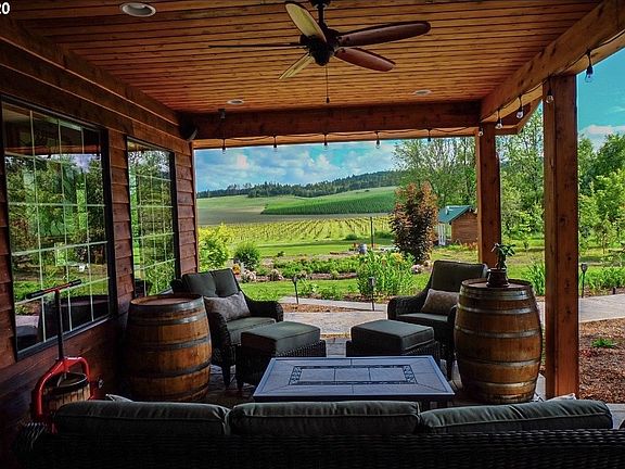 Privacy! Completely updated 3500 sq.ft., 3 bedroom craftsman-style home on 7 acre gated estate. Huge garden area, mature fruit trees, & vineyard. New out building designed as an artist studio. 2 gas fireplaces. 3 new ductless units. Gourmet kitchen. Great room. Spacious master with vineyard-view deck. Stunning game room with wet bar. Plus 3 outdoor patios. Remodeled barn. Short drive to Eugene/Corvallis. This is a one-of-a-kind property. Income producing vineyard & winery potential.