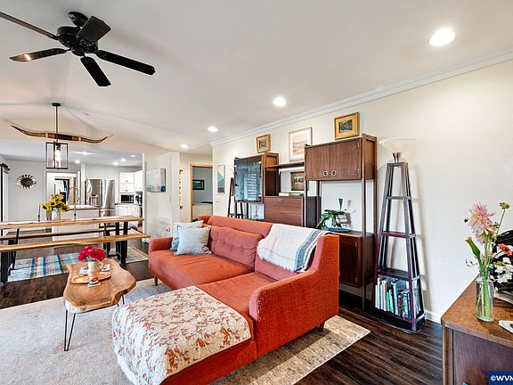 Picturesque 7-acre hobby farm with vineyard and valley views. Great room floor plan with focal-point kitchen, den with propane fireplace, and family room with wet bar, concrete floors, and French doors to a custom covered patio. Private primary suite with full bath and balcony. Laundry with pet wash + separate utility room, workshop (10x20) , barn/shop (1820 +/-sq ft) with stall, vineyard of Pinot Noir & Syrah, gardens, fruit trees, and deer fencing. Conveniently located between Eugene and Corvallis.