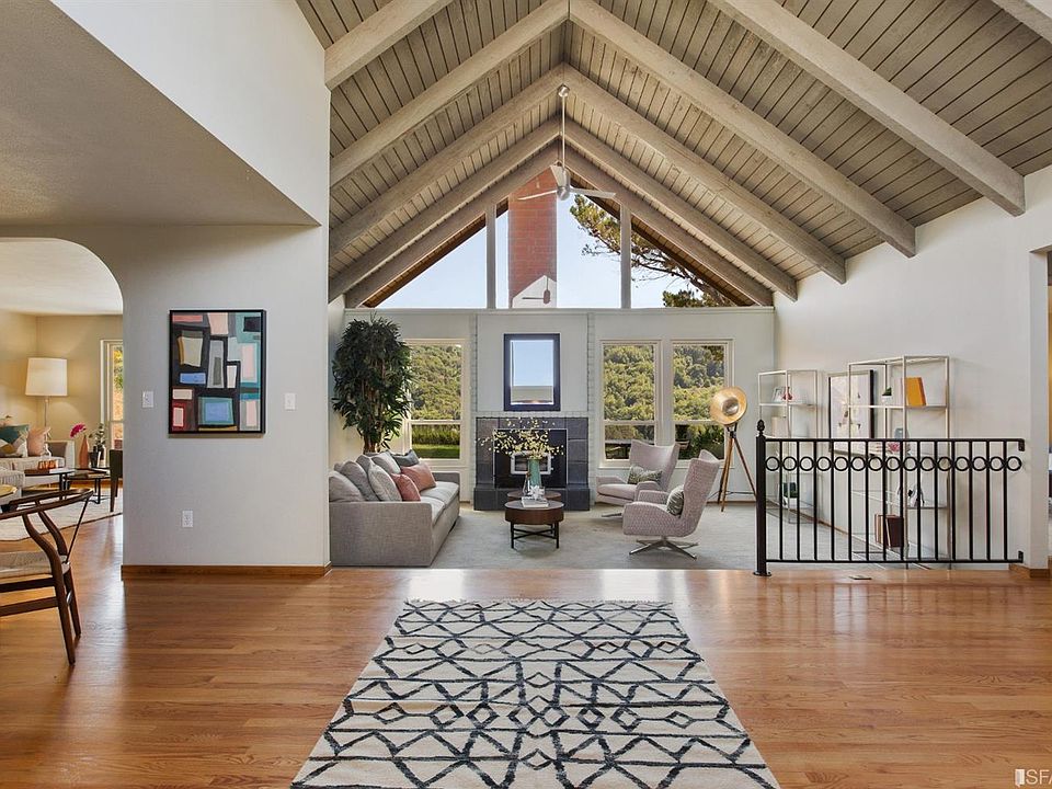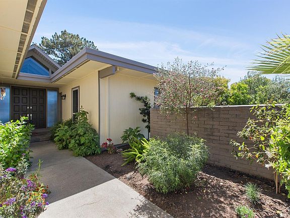 Built in 1968, this Mid-Century modern home embraces a clean, minimalist aesthetic, an emphasis on bringing the outdoors in, and the presence of angular structures. Walking through the front door, the height-rich open beam ceilings take you back to a relished time. This hill top home features spectacular views of Pinole Valley Park, encompassing two lots, all very private, teeming with an abundance of nature and colorful plantings, including lemon, peach and palm trees. There are two wings off the living space: the master bedroom and bath in the south wing; and the other three bedrooms and the second bathroom in the north wing. Your guests can access all the festivities by walking through the side gate to the expansive side yard, which also has access to the garage and is large enough to store an RV or boat. Peaceful and nature-rich - this is a distinct home with a lifetime of promise for growing families and entertainers alike.