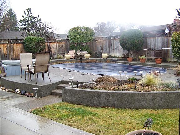 Pride of Ownership! This property is Move-in Ready! Tastefully decorated throughout. Upgraded kitchen appliances, tile countertops, hardwood floors, step down living room with bay windows, newer paint and lots of woodwork. The home features 2 large bedrooms and a master with bath. The home sits on a cul-de-sac lot and back off the street for complete privacy. The back yard has a beautiful in-ground pool and hot tub. Easy care landscaping.