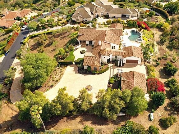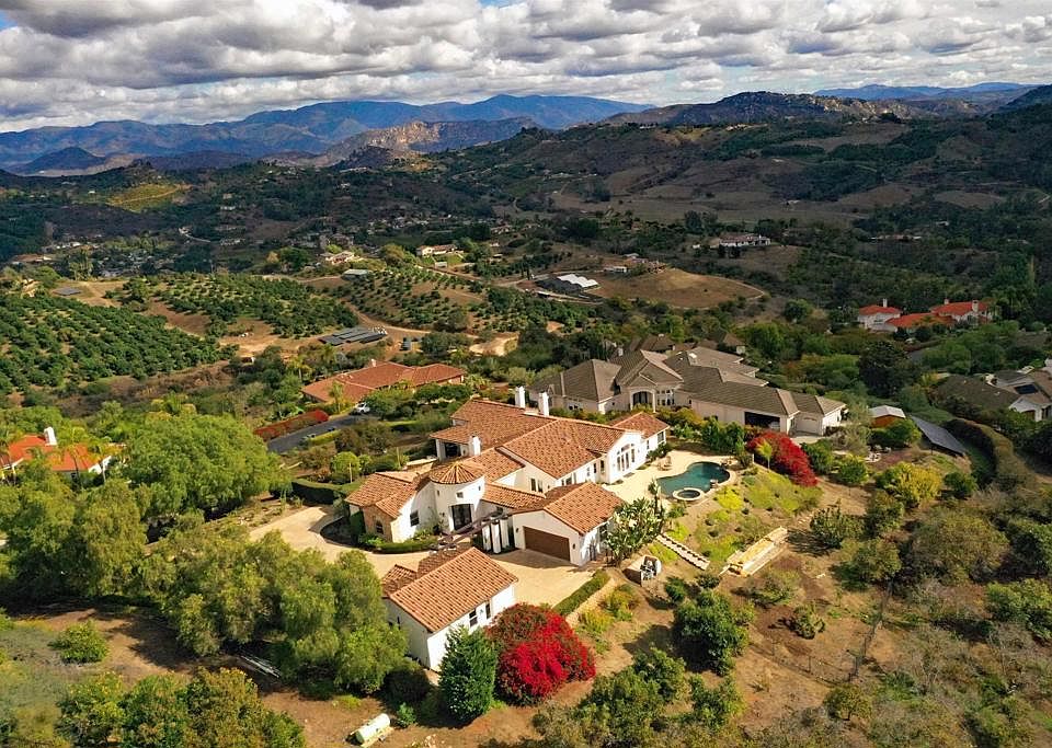 PANORAMIC Views! This stunning updated 4BR/5.5 bath home with a detached casita is perched on 1.58 acres hidden from neighbors. This exquisite single-story estate is a stunner! Offering 180° views stretching to the northeast and southwest—capturing rolling hills, vineyards, orchards and spectacular sunrise & sunsets in complete privacy. The beauty of Fallbrook and its nature surrounds you from the outside and flows inside with expansive windows to bring the nature in! Nestled inside the exclusive hillside gated Champagne Crest neighborhood - a true hidden gem! This property features multiple resort-style outdoor living areas, beach entry pool, three waterfalls, hot tub, fire pit, built-in BBQ, courtyard and a covered veranda ideal for entertaining. The modern Spanish Mediterranean inspired design offers all bedrooms with ensuite full bathrooms, 12ft high ceilings, arched entry's, an enormous chef’s kitchen including a butlers pantry, built-in bar, formal dining with china cabinet built-ins, 3 fireplaces YES its all pristine and solid high end construction. The primary suite includes direct patio and pool access, a spa-style bath, large walk in closet with built-in cabinetry and sweeping southwest and sunset views from the jetted bathtub. ADU style detached casita with a full bath is ideal for use as a work space, gym or flex space for all your hobbies (multigenerational living). Pride of ownership abounds in this gorgeous custom built home. Private hideaway surrounded by extraordinary vistas for miles. This property is an entertainers delight and a horticulturists dream with over 26 species of tree's (non certified organically treated). Dual zone AC (2023 improved). A rare opportunity inside Champagne Crest to enjoy privacy, elegance and panoramic Fallbrook scenery in a premier gated community. That countryside feel carries into town—open spaces, big skies, and a sense of tranquility are part of everyday life in Fallbrook. 16 world class golf courses within a few miles, 12 local winery's (Fallbrook Winery and Monserate Winery adjacent). Fallbrook is the avocado Capital of the World with their renowned annual Festival in April.
