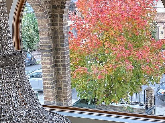 3272 sq ft. Brick construction with excellent curb appeal and a beautifully manicured front garden with a tree that blooms in the spring, leading up to a front porch and covered portico. Access the double volume entry through the double doorway, with a spectacular chandelier on a pulley system.