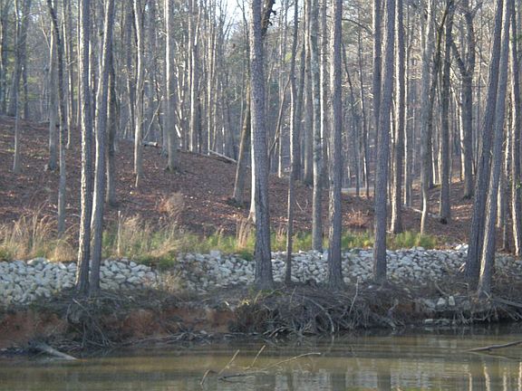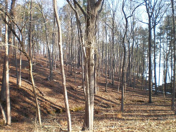 Wooded lot with main channel views, but off the main channel in a cove. Lot has a dock in place.