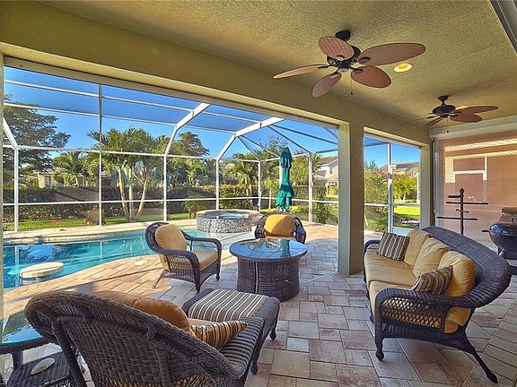 Do Not let this one slip away!!! This large open floor plan shows like a model, bright and airy with lots of views of the HUGE LANAI/POOL . Tile throughout with plank wood look tile in the bedrooms. The master is very large with room for a sitting chair, walk in closet and huge master bath! Kitchen has nice granite counters with decorative back splash that is well lit for night time ambiance. The Lanai is all about entertaining! Plenty of room for many lounge chairs etc or find yourself floating in your very own GORGEOUS salt water swimming pool done up in designer style mosaic rainbow tile as you listen to your spa bubbles calling your name! The neighbors are all welcoming and as most know Sandoval has so many amenities for seasonal and year rounders to have fun including Awesome resort style pool with a kids zone including water slide and more...tennis, pickle ball and even a fishing pier! Call for an immediate private showing!