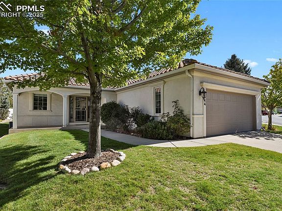 Main level living at its finest! Come see this beautiful 4 bedroom, 4 bath, ranch-style home in the desired gated community of Cypress Ridge. Beautiful luxury-vinyl floors and vaulted-ceilings greet you as you enter the bright and open living room with large windows, a gas fireplace, and built-ins. Enjoy the gourmet kitchen with corean solid-surface counters and upgraded stainless steel appliances and pantry. Sit at the large breakfast nook to relax and share your lattes. The large master bedroom suite includes two separate sinks with a 5-piece ensuite, and a very spacious walk-in closet. Finish the main level with an additional bedroom, another full bath just off the bedroom, dining room, and the laundry room with direct access to the oversized two-car garage. Entertain or enjoy relaxing afternoons in your lush backyard with a large concrete patio. The finished basement includes a massive rec room, two more large bedrooms, and two full bathrooms. This configuration might be great for multi-generational families. Use the separate carpeted room as your work-out room or turn it into a game room with your pool/ping pong table. Plenty of storage space in the unfinished areas. This tranquil gated community encompasses 126 superb patio homes. Stroll along the lovely walking paths and take a break at the gazebo or benches throughout this 29 acre property. This is truly maintenance-free living including snow removal, stucco exterior, and a Spanish tile roof. All this is within walking distance to Rampart Park with walking paths, ultimate frisbee and playground. There's a back gate with easy access down to the park. Located in the award-winning D-20 school district. Close to shopping, restaurants, and easy access to military bases. Don’t miss out on this fantastic opportunity. Schedule a showing today.