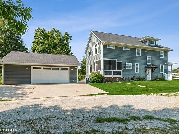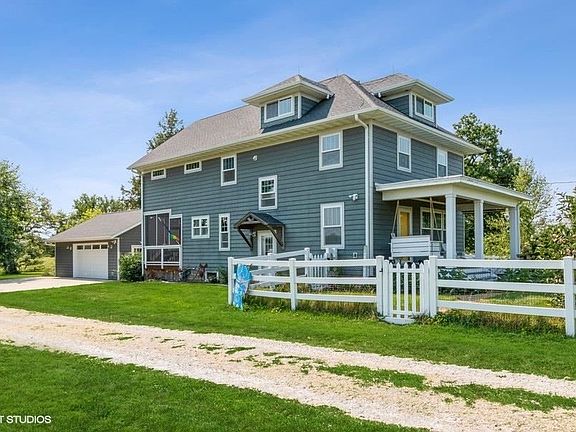 Updated 4 square older home. Open front porch and back screened porch add to the charm. Drop zone by 1/2 bath on main floor. Updated kitchen with white cabinets. Moveable island. Large Dining room, family room and Living room all on main floor. Hardwood floors in much of the home. Primary bath with ensuite bathroom. Bathroom has claw foot tub, and walk in shower. Walk in closet and laundry closet off primary bedroom. Walk up attic finished for another bedroom, sitting room or study. Large oversized 2 car garage and additional out buildings on this over 4.4 acre property. Hard surface road access.