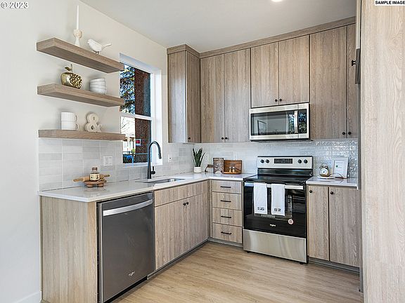 NEW gorgeous home showcasing modern architecture+elevated designs throughout this impeccable open concept 2 bed, coveted 2.1 bath units steps to Kelly Butte Natural Areas trail system! This is not a condo, NO HOA! Thoughtfully designed, enjoy high-end features, lofty ceilings + neutral, warm designer tones! Quality can be seen with the custom kitchen boasting gorgeous tile work, eat-bar, slab quartz counters + expansive windows! Upgrades grace each space including hard surface flooring, AC + doors out to private, fenced patio! Enjoy a 1-year builder warranty from a local boutique builder! (List price is subject to the buyer qualifying for the Portland Housing Bureau - System Development Charge exemption program to promote affordable housing in Portland, call for more info.)