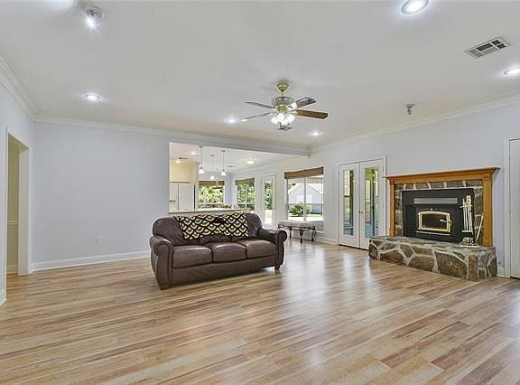 Large lovely home with lots of natural light on 3 quiet acres. Spacious rooms. Kitchen has tile backsplash and solid surface counters. Master suite with laminate floors, separate tub/shower, & private entrance to screened porch. Lot of space for vehicles with 2 car carport, detached 1 car garage and extra wide parking pad. Thereâs also studio/workshop with half bath and cooktop for outdoor parties or a cool man cave/she-shed. Pond with pier. Peaceful views of pasture beyond. Whole house generator.