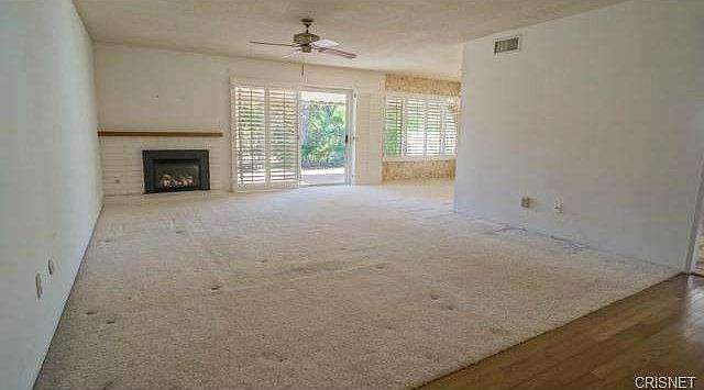 Experience all the benefits of a senior community! Great amenities including pool, spa, golf, picnic area, gym/exercise room, club house to name a few! Cozy fireplace in living room with ceiling fan, neutral carpet and shuttered slider to the yard. Formal dining room features beautiful shuttered windows and crystal chandelier. Eat in kitchen with white tile counters and appliances, a nice garden window to let the light in and wood paned slider to the back yard. Big master with mirrored wardrobe and shutters and private master bath. Shutters in secondary room. Enjoy the golf course views from the big back yard with a water fountain feature and large covered brick patio!