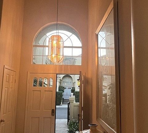 Nestled in the esteemed gated community of Bella Vista, this exquisite property boasts 3 bedrooms plus an office area suitable for a gym, playroom, or other uses. Spanning 2,549 square feet, the living space is ample, providing a serene retreat with picturesque views. The expansive living area features soaring cathedral ceilings and a dual-sided fireplace, enhancing the home's grandeur. The master suite, complete with a fireplace, along with two additional bedrooms and a bathroom, are situated on the second floor. The first floor showcases travertine tile and carpeted flooring across its generous living quarters. A 3-car garage offers ample storage and parking space. The property affords breathtaking views of city lights, a lush green belt, and a park-like backdrop, including the majestic Saddleback Mountains. Bella Vista ensures a secure environment for its residents, encircled by the scenic Moulton Ranch Park, which spans 7 acres of walking trails and natural splendor. Residents also enjoy access to community swimming pool and spa. This property is truly a gem that warrants a visit.