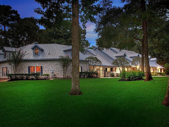 Luxurious custom estate brilliantly re-imagined into a high-end modern ranch! Coveted upfront Grogan's Mill location in an exclusive gated neighborhood close to The Woodlands golf & amenities. Glorious 3.6 acres w/100 yr. old oaks, circle drive & inviting curb appeal. EVERYTHING CUSTOM & NEW! Fabulous designer paint, upscale lighting/plumbing fixtures; Custom white oak hardwood floor; Premium tile; site-built custom knotty alder cabinets, trim, doors; Quartz counters; Home lives as 1-story with an extra flex room up; 4 spacious bedrooms, 5 custom baths, 2 upscale powder baths; Dual primary suites w/sitting areas, lovely patios, dramatic stone fireplace in living room; enormous family room with skylights & unending views; Stunning island kitchen w/ Thermador Pro Line appliances & beverage bar w/ice maker, wine refrigerator. Impressive billiard room w/custom bar; Private study; Spacious Dining; Attached carport leads to 3.5 car garage, fitness room and a garage apartment w/full bath.