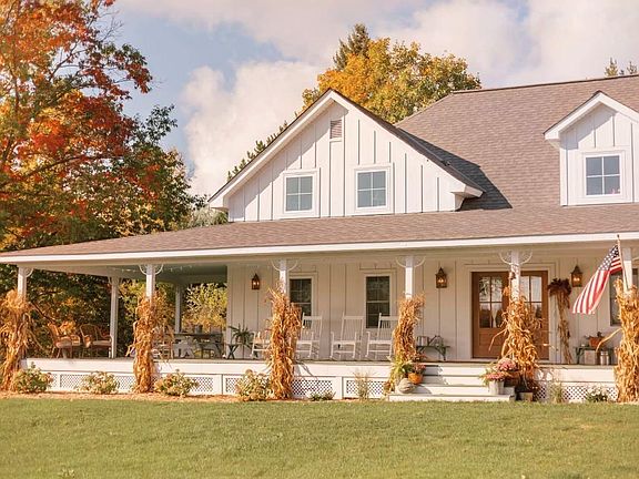 Step into timeless elegance in this renovated farmhouse, seamlessly blending historic charm with modern luxury! Originally built in late 1800s, this home underwent a transformative 2020 update, merging classic elements like shiplap, board/batten, brick, & stone w contemporary comforts. Enjoy the wraparound porch & an awe-inspiring woodburning fireplace. The main floor primary offers a walk-in closet & private full bath, enhancing the allure of comfort. The chef's dream kitchen boasts a large center island, farmhouse sink w a smart faucet, & custom appliances. Discover history in every corner, from timbers to paneled Dutch doors, making this home a living piece of history. Upstairs, find 3 additional bedrooms & 2 bathrooms. The unfinished basement holds loads of potential, adding to the allure of this remarkable property. On the expansive grounds, explore the original barn, a spacious chicken coop, & goat barn, adding charm & versatility. Own a piece of history where past meets present!