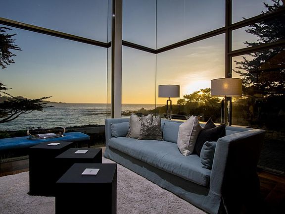 From the privacy of this extraordinary home, the unobstructed views of Stewart's Cove and Point Lobos are undoubtedly among the finest on Scenic Road at the Carmel Point. When the cove is filled with dolphins or whales it is a breathtaking experience comparable to witnessing nature at its most magnificent, anywhere on the planet. Relax on the private backyard lawn area or upper sun deck of this south-facing contemporary masterpiece, formerly the residence of noted artist Thomas Kinkade. In 2012 the home was altogether re-designed and constructed to the demanding standards of modern luxury. Features include, radiant heat, Select-Clara Walnut floors, a variant of Bird's Eye Maple cabinetry and Bamboo Marble.This home is a delight!