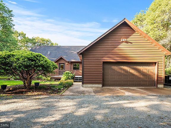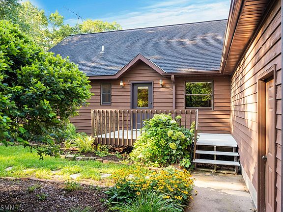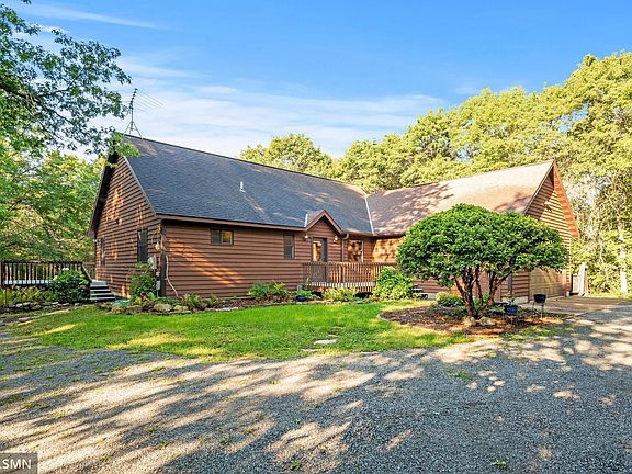 FIRST TIME ever offered on the market. This home has TONS of privacy, heavily wooded, located in the St. Croix Scenic Riverway where you have access to public lands along the St. Croix River yet only 10 minutes to town. Bright and open with soaring vaults, stone-woodburning fireplace, 3 deck spaces, lean-to on back of garage. Perfect set up for multi-generational living with two owner suites. HIGH SPEED fiber optic at the home.