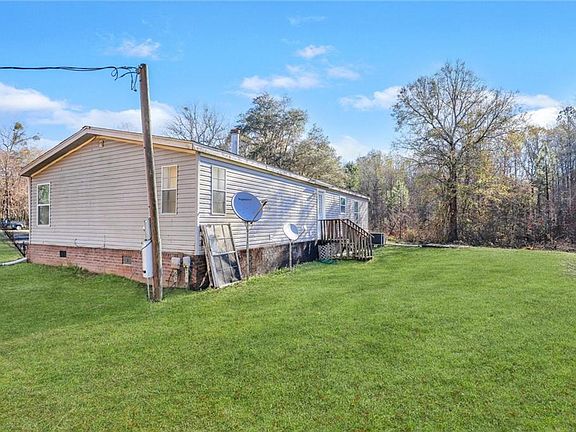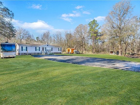 3BR/2BA doublewide mobile home on 2.09 acres featuring permanent foundation and detached storage bldg. Interior features include spilt floor plan design w/master suite encompassing separate shower, garden tub, dual vanities, walk-in closet, and built in linen cabinet. Living room fireplace and formal dining room area opening into large kitchen w/ laundry room off of the back. Washer & Dryer included in the sale. Private, convenient location.