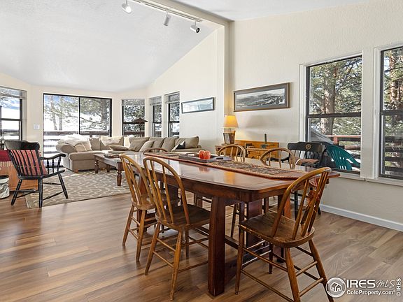 4 bedroom / 3 full bath home offers main level living plus separate living in the lower level in highly desirable Thunder Mountain. Tucked in the pines on 1 acre with mountain views. Open floor plan main level includes great room with vaulted ceilings and opens to the deck, kitchen and dining room. Rec room has a wall of windows framing a glimpse of the the snowy peaks through the tree tops. Primary suite has a spacious bath with walk in shower, soaking tub, double sinks and skylight. Wrap around deck, two more bedrooms, full bath and laundry room complete the main level. Lower level is a daylight, walk out and offers separate living to offer for long term rental to help pay your mortgage. Includes private entrance, living room with gas fireplace, kitchenette and dining room, full bath and one bedroom. Hike into Rocky Mountain National Park at the end of the road. Just minutes to the YMCA and downtown Estes Park.