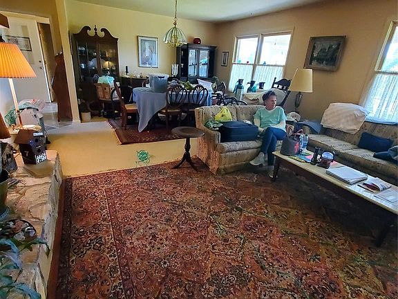 One Owner All Brick Ranch with 54.68 acres of land. Home has 3 Bedrooms, 2 and 1/2 Baths, Office, Living Room, Dining Room, Kitchen, Breakfast Area, Large Laundry Room, enclosed screened in back porch, attached double garage and detached single garage with workroom. Pull down attic for more storage.